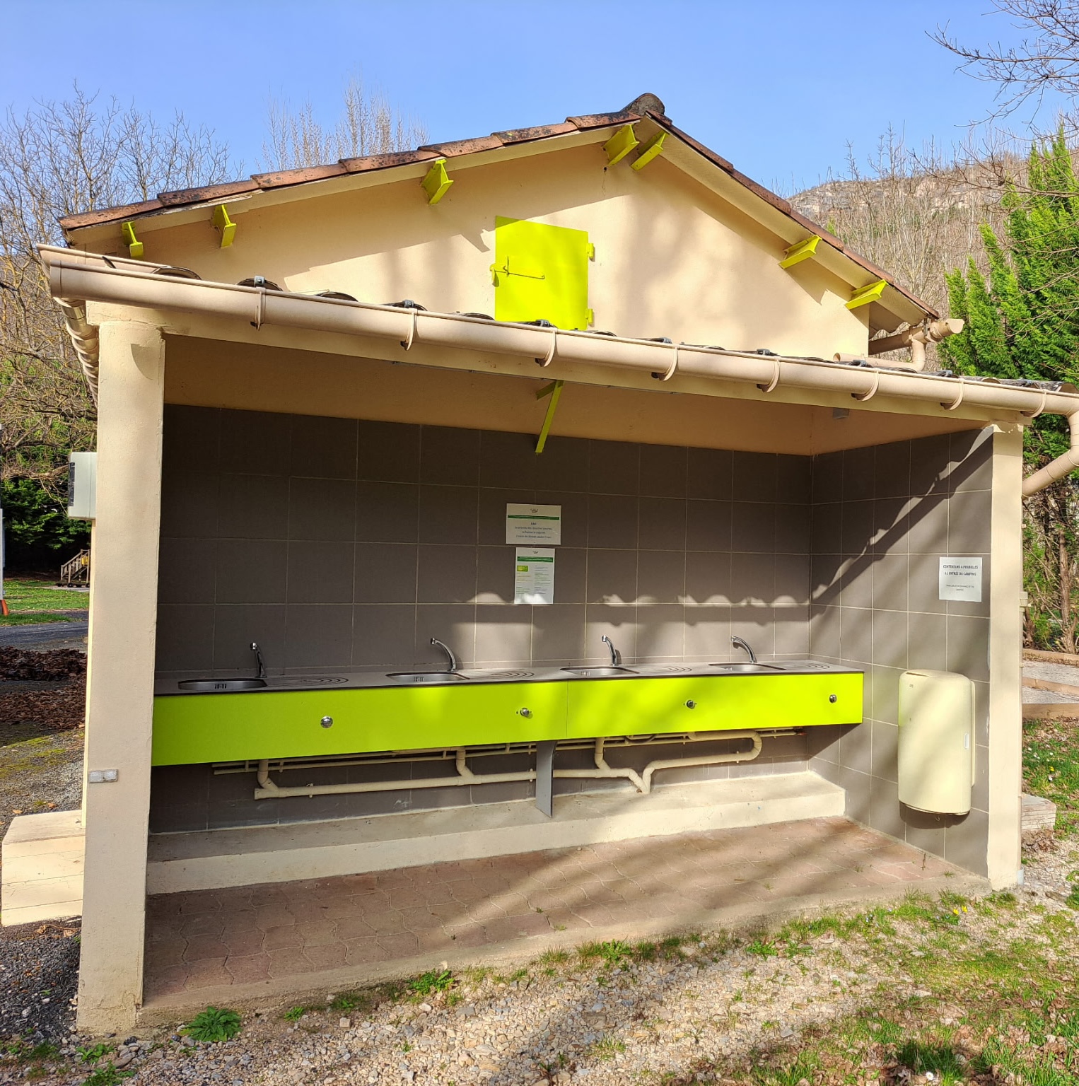 Nous mettons à votre disposition une machine à laver en libre service au bloc sanitaire.